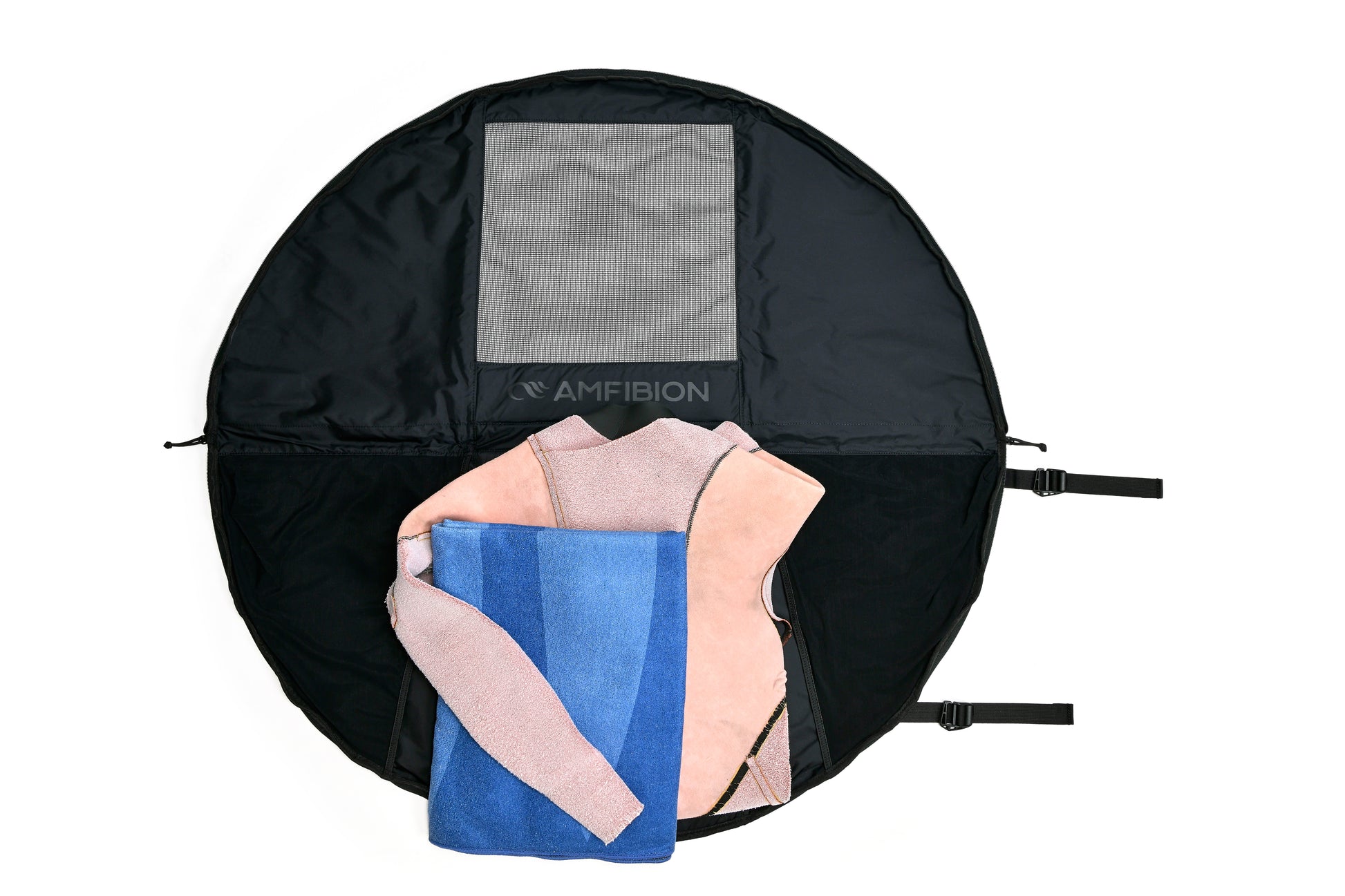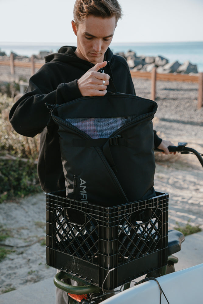 Whether you're on the bike or footing it to your spot, the Shoreline™ backpack has you covered. This pack is convertible to a wetsuit changing mat. It stows all your gear and all the mess in one place, while prolonging the life of your neoprene. The Shoreline™ keeps all the parking lot grease, sand, dirt, and gravel off your wetty. This bag will hold your wetsuit, booties, towel, and any extra gear you need. Made of a strong nylon material and PU coating this convertible mat-to-bag is both durable and water-proof.